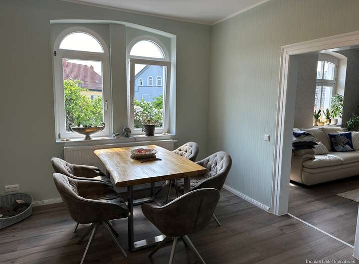 Das Wohnhaus als straßenbildprägendes Gebäude des ehemaligen Vierseitenhofes spiegelt mit seiner Größe und Architektur die Geschichte wieder, in der sich in Seehausen einerseits der Maschinenbau und andererseits der Zuckerrübenanbau entwickelt haben. Dass das Gebäude daher unter Denkmalschutz steht, ist nur folgerichtig. Das komplette Ensemble und insbesondere das Wohnhaus mit seinen 3 Wohneinheiten wurde in den zurückliegenden Jahren umfangreich saniert und modernisiert. Im OG befindet sich eine Wohnung mit ca. 105 m² Wohnfläche, die gerade erst in 2023 komplett saniert wurde und sich in einem sehr modernen Zustand zeigt, wobei Altes und Neues sehr gut zusamengeführt wurden. Eine nahezu neue, sehr großzügige Küche bildet den Wohnmittelpunkt. In die EBK schmiegt sich nahezu unsichtbar ein Durchgang. Dahinter verbirgt sich ein perfekt eingepasster Hauswirstchaftsraum. Vor der Küche lädt ein Essbereich zum Verweilen ein und das moderne Bad ist großzügig und mit ebenerdiger Dusche und Wanne ausgestattet. Im neu gestalteten Wohnzimmer vermittelt ein großes Wandbild mediterranen Flair und ein Gefühl von Weite. Zum Schlafzimmer, mit der freigelegten Fachwerkkonstruktion, gehört ein zweites Bad. Im EG des Hauses befinden sich 2 weitere, aber kleinere Wohneinheiten mit jeweils ca. 50 m². Eine diese Wohnungen ist ebenfalls komplett modernisiert, während die andere WE teilweise moderniseirt wurde. Das komplette Haus ist unterkellert. Hier im Lagerkeller befinden sich die Hausanschlüsse, die Heizungsanlage und ein weiteres WC. Der Dachboden ist bisher ungenutzt und dient lediglich als Abstellmöglichkeit, bietet jedoch ein enormes Ausbaupotential. Das Dach wurde in 2009 neu eingedeckt und die Fenster des Hauses wurden in 2015 erneuert. Erst in 2023 wurden eine moderne Gasbrennwertheizung und ein neuer Warmwasserboiler eingebaut. Die E-Anlage ist ebenfalls komplett modernisiert worden. Die Fassade hat ebenfalls erst vor kurzer Zeit einen neuen Anstrich bekommen.