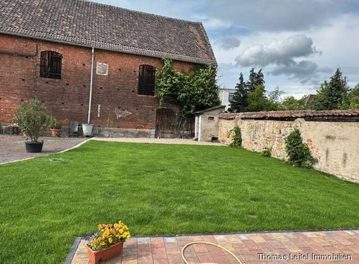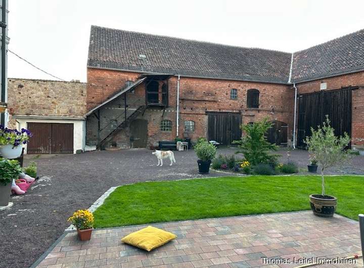Die umfangreichen Nebengebäude, die sich ebenfalls in einem guten Zustand befinden, bieten viel Platz für Hobbys unterschiedlichster Art - vom Schrauben bis zur Tierhaltung. Der Innenhof ist gepflegt und bietet unterschiedlichste Plätze zum Verweilen und enspannen. Hinter der linksseitigen Scheune befindet sich ein Nutzgarten. Das große Eingangstor mit seinem Torbogen verleiht diesem ganz besonderen Objekt zusätzlich seinen ganz besonderen Charakter.