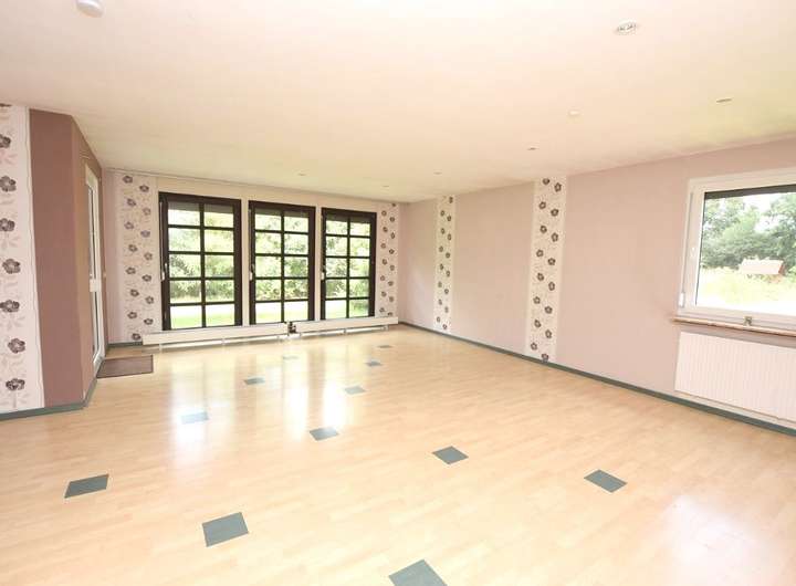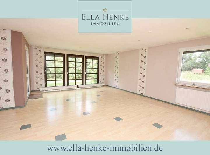 In herrlich ruhiger Wohnlage erwartet Sie dieser großzügige Bungalow mit viel Platz und einem weitläufigen Grundstück. Mit einer Wohnfläche von ca. 152 m² und insgesamt sechs Zimmern (2 davon im ausgebauten Obergeschoss) bietet das Haus ideale Voraussetzungen für Familien, die Wert auf Freiraum, Komfort und naturnahes Wohnen legen. Mittelpunkt ist der großzügige Wohnbereich mit Zugang zur Terrasse und einem direkten Blick ins Grüne. Der angrenzende, weitläufige Garten eröffnet vielfältige Gestaltungsmöglichkeiten – ob als Spielfläche für Kinder, zur Erholung oder für Hobbygärtner. Neben den Wohnräumen stehen Ihnen eine Garage sowie ein großes Nebengebäude zur Verfügung, das sich ideal als Lager oder Werkstatt nutzen lässt. Wir freuen uns auf Ihre Anfragen!