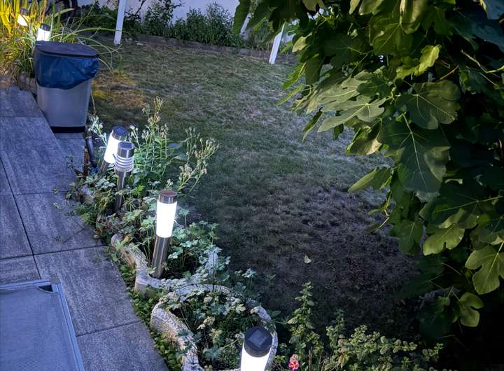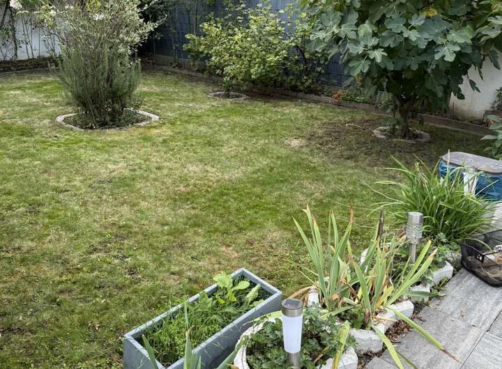 Der hintere Garten ist liebevoll gestaltet und bietet ausreichend Platz für Freizeit und Erholung. Hier wachsen unter anderem Birnen-, Apfel-, Oliven-, Feigen- und Weinstöcke, die dem Grundstück eine mediterrane Atmosphäre verleihen.