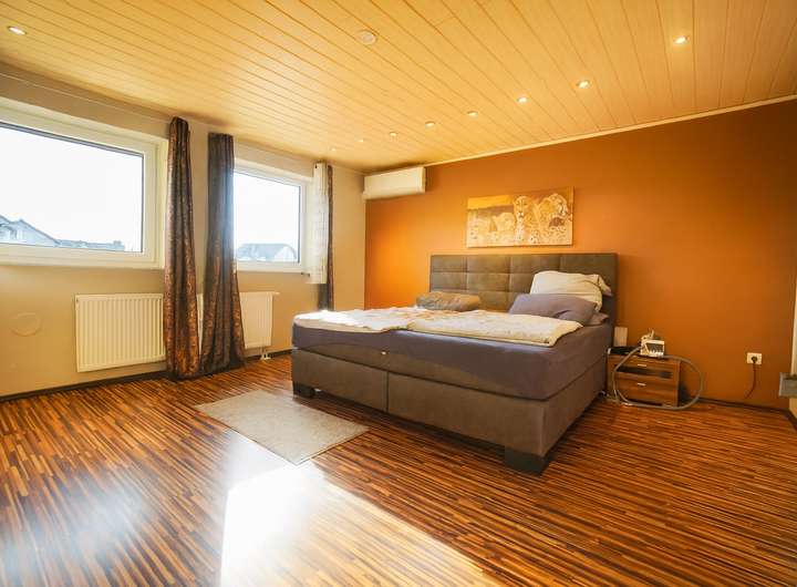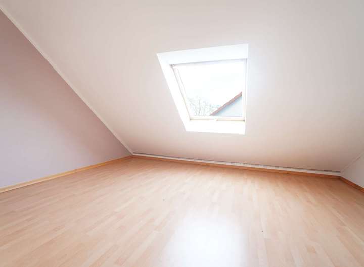 Das Dachgeschoss erweitert den Wohnraum deutlich. Hier befinden sich ein sehr großzügiges Zimmer sowie ein weiteres Zimmer, die vielseitig nutzbar sind – etwa als zusätzlicher Wohn-, Arbeits- oder Rückzugsbereich.