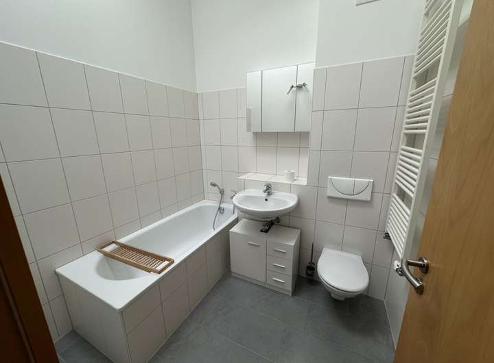 Besonders hervorzuheben ist das hochwertig sanierte Badezimmer, das sowohl mit einer modernen Dusche als auch einer komfortablen Badewanne ausgestattet ist – ideal für Alltag und Erholung.