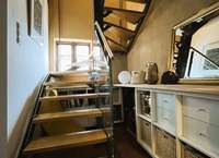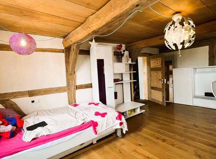 Zwei gemütliche Schlafzimmer, eine großzügige Relax-Ecke und ein stilvolles Badezimmer schaffen ein harmonisches Wohnambiente – ideal für Paare oder Familien, die das Besondere suchen. Die Deckenhöhe von 2,20 m im Obergeschoss sorgt für eine gemütliche Atmosphäre und unterstreicht den authentischen Charakter des Hauses.
