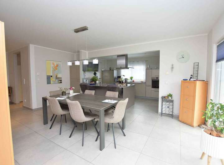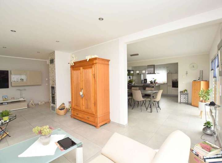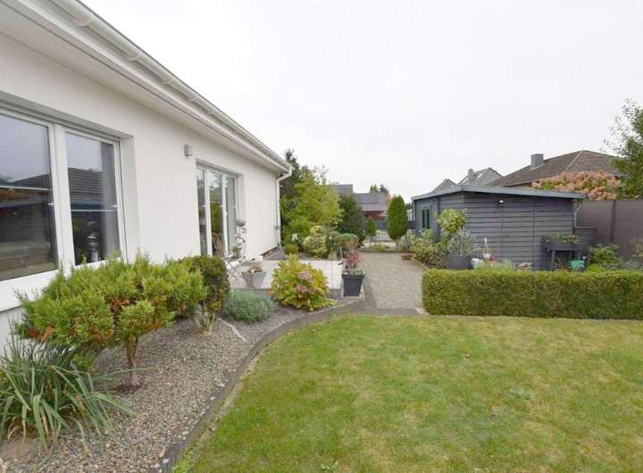 Wohnen auf einer Ebene - Exklusiver, moderner Bungalow. in den Sie so einziehen können, weil er topgepflegt und neuwertig ist. Er bietet insgesamt 5 Zimmer und 2 Bäder und eignet sich somit für eine Familie oder ein anspruchsvolles Paar. Zur hochwertigen Ausstattung gehören u.a. die elegante Einbauküche, ein Kamin im Wohnzimmer, Fußbodenheizung und ein begehbarer Kleiderschrank. Der Garten ist liebevoll und pflegeleicht angelegt mit einem modernes Gartengerätehaus und 2 Terrassen, eine davon mit Glas überdacht. Für die PKW steht eine Dopppelgarage mit Wallbox zur Verfügung. Ein tolles Haus - übrigens mit Erdwärmepumpe und Effienzklasse A+. Sehr gern vereinbaren wir einen Besichtigungstermin mit Ihnen.