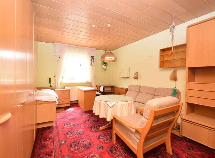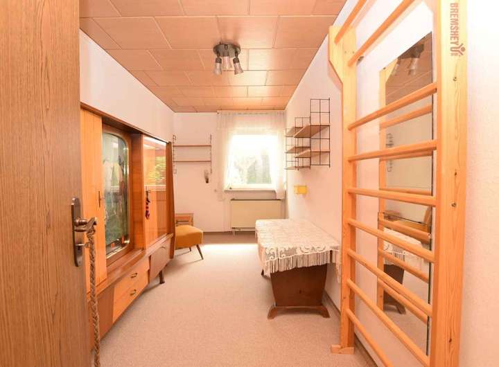 Das in Fertigbauweise errichtete Okal-Haus verfügt über eine große, überdachte Terrasse sowie einen zusätzlichen überdachten Freisitz – perfekte Orte, um die warmen Monate im Freien zu genießen. Der weitläufige Garten mit Gartenlaube und separatem Gartengeräteraum bietet vielfältige Nutzungsmöglichkeiten für Gartenliebhaber oder entspannte Freizeitgestaltung. Das Haus ist voll unterkellert, für Ihre Fahrzeuge stehen gleich zwei Garagen zur Verfügung. Dieses Haus bietet eine solide Basis und viel Potenzial – mit etwas Modernisierung schaffen Sie sich hier ein gemütliches Zuhause in ruhiger Lage. Gern zeigen wir Ihnen das Haus bei einer Besichtigung.