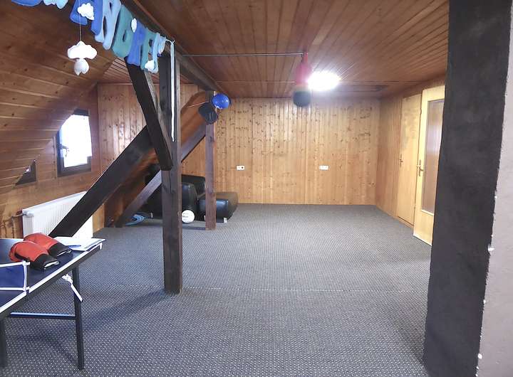 Das Dachgeschoss wurde zu einem beeindruckenden Spielzimmer mit fast 33 Quadratmetern ausgebaut und bietet somit ausreichend Platz für Spiel und Freizeitgestaltung.
