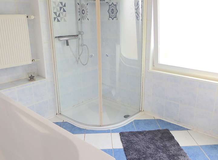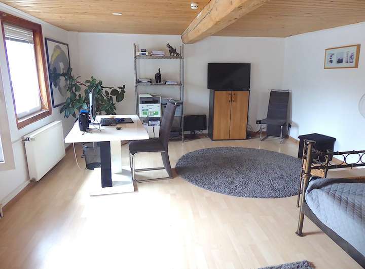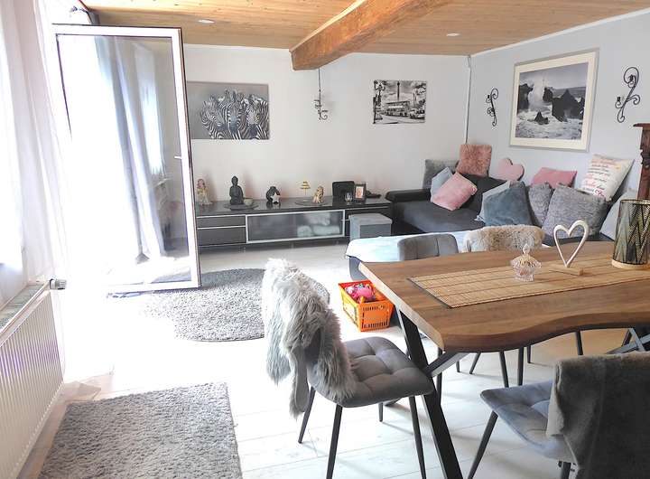Dieses Einfamilienhaus wurde um 1900 im Fachwerkstil gebaut und 1970 durch einen massiven Anbau erweitert. 2022 wurden die Eingangstür durch eine neue Aluminium-Haustür ersetzt, die Fenster im Erdgeschoss, inklusive Balkontür, modernisiert, und neue Laminatböden im Wohnzimmer und Obergeschoss verlegt. Die Wände wurden neu gestaltet. nnIn der Küche wurden Wasser- und Stromleitungen erneuert. 2023 erhielt der Balkon ein neues Geländer, und Garten sowie Terrasse wurden pflegeleicht neu gestaltet. Der Garten ist komplett eingezäunt und sicher für Kinder und Hunde. Das Haus wird mit einer Gaszentralheizung aus 1990 beheizt, das Dach ist in gutem Zustand. Ein Glasfaseranschluss ist beantragt.