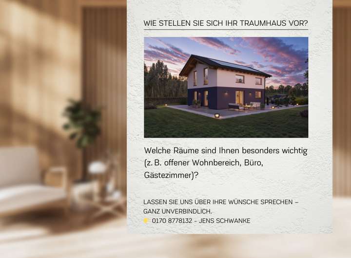 Dieses Hausprojekt ist auf einem realen Baugrundstück vorgesehen oder befindet sich aktuell in der Planungsphase – wahlweise kann es selbstverständlich auch auf Ihrem eigenen Grundstück realisiert werden. Das Grundstück erwerben Sie direkt vom jeweiligen Eigentümer. Der angegebene Hauspreis versteht sich ohne Grundstück.