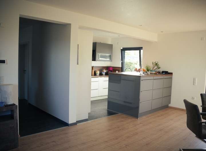 Eine gut durchdachte und hochwertige Einbauküche mit guten Stauraummöglichkeiten ist ebenfalls verbaut.