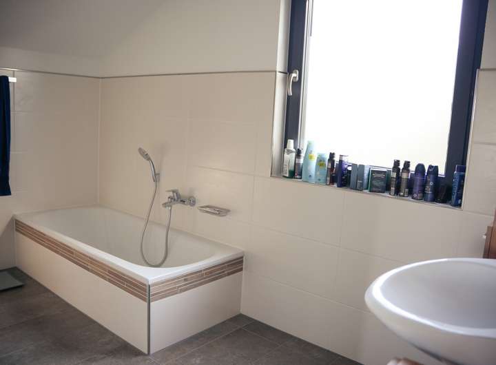 Obergeschoss: 3 Zimmer, Tageslicht-Bad mit WC, Badewanne und Dusche