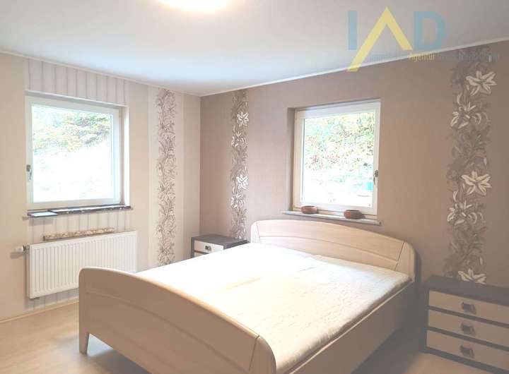 In toller Aussichtslage am Ortsrand steht dieses sehr geräumige Einfamilienhaus mit a. 200m² Wohnfläche. Es wurde im Jahr 2005 mit zwei ausgebauten Vollgeschossen errichtet. Es handelt sich um ein massives KLB-Haus, welches mit Klima-Leichtblock-Steinen erbaut wurde. Die Wände im Erdgeschoss sind 35 cm stark, im Obergeschoss 25 cm. Die obere Geschossdecke ist mit 17 cm Steinwolle gedämmt, die Außenwände nochmal zusätzlich 10 cm stark. Um das Haus wurde eine Drainage angelegt, ebenfalls an der Stützmauer im Garten.