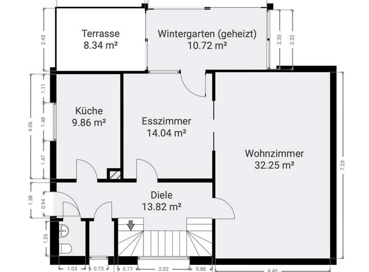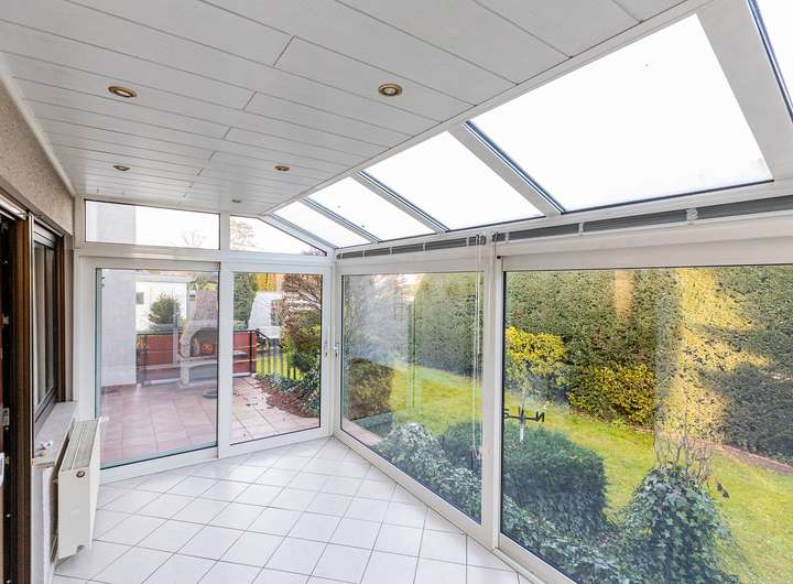 Ein besonderes Highlight ist der beheizte Wintergarten, der den Wohnraum harmonisch erweitert und zu jeder Jahreszeit ein beliebter Rückzugsort ist – ob als Spielbereich für Kinder, gemütlicher Essplatz oder ruhiger Leseort mit Blick ins Grüne.