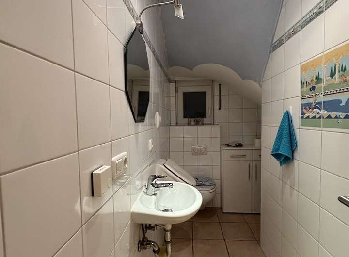 Im Inneren erwarten Sie vier großzügige Zimmer, darunter drei Schlafzimmer, die Ihnen und Ihrer Familie eine angenehme Rückzugsmöglichkeit bieten. Das helle Badezimmer mit Dusche, Badewanne und Bidet sorgen für Komfort und Bequemlichkeit im Alltag. Ein separates Gäste-WC im Erdgeschoss ist ebenfalls vorhanden.
