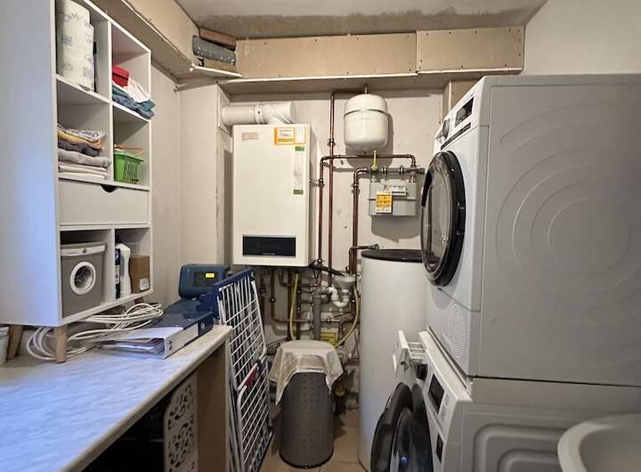 - eine Gaszentralheizung mit Warmwasserpufferspeicher
