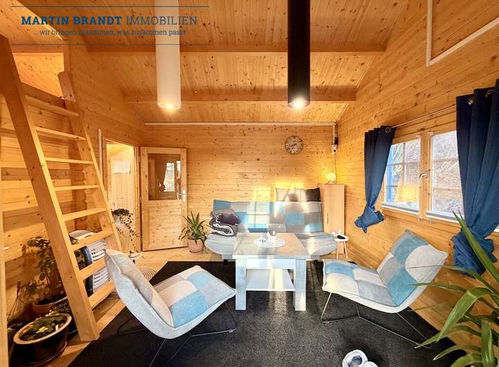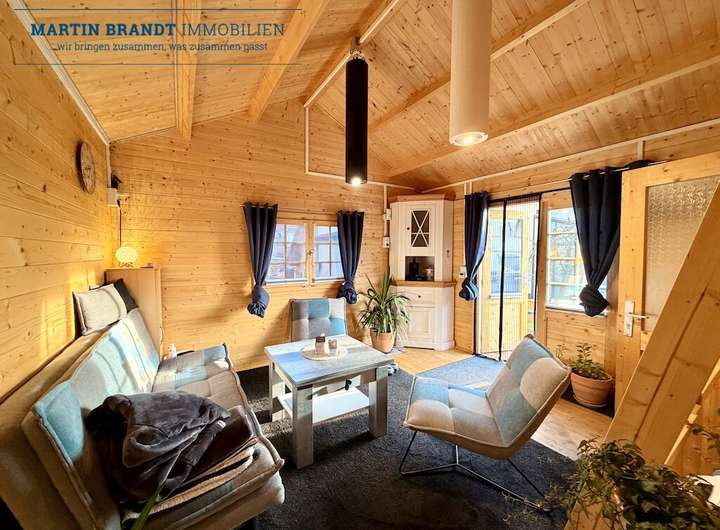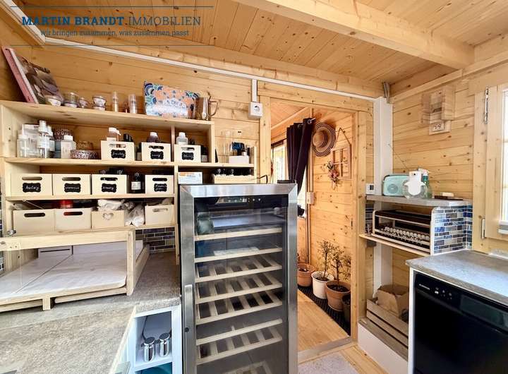 - großes Gartenhaus mit Wohnbereich, Einbauküche und Spitzboden