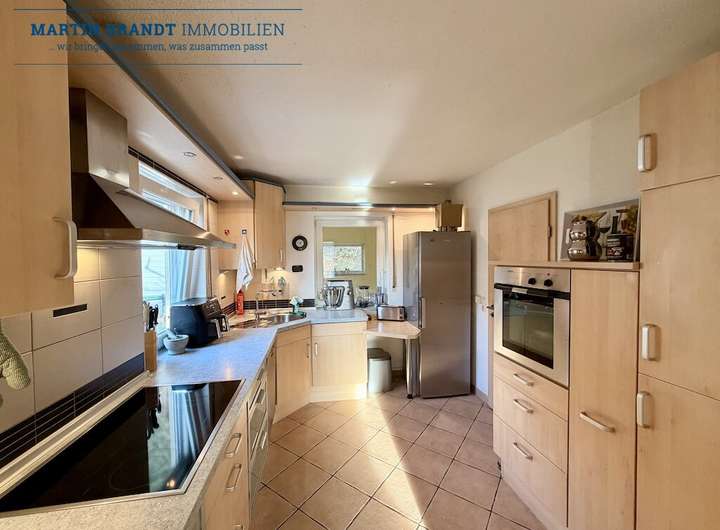 Die Ausstattung des Hauses umfasst eine schöne Einbauküche, in der Sie Ihre kulinarischen Fähigkeiten entfalten können. An kühlen Tagen lädt der gemütliche Specksteinofen im Wohnzimmer dazu ein, entspannte Stunden mit Ihren Liebsten zu verbringen. Darüber hinaus bieten Fliesen, Teppichboden und Korkplatten-Bodenbelag eine harmonische Mischung aus Stil und Funktionalität.