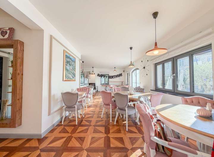 Diese Immobilie ist ein echtes Unikat: Sie vereint modernes Wohnen und hochwertiges Gewerbe unter einem Dach. Auf einem rund 525 m² großen Grundstück befinden sich zwei luxuriöse Maisonette-Penthousewohnungen sowie eine voll ausgestattete Gewerbefläche mit Gastrokonzession im Erdgeschoss.