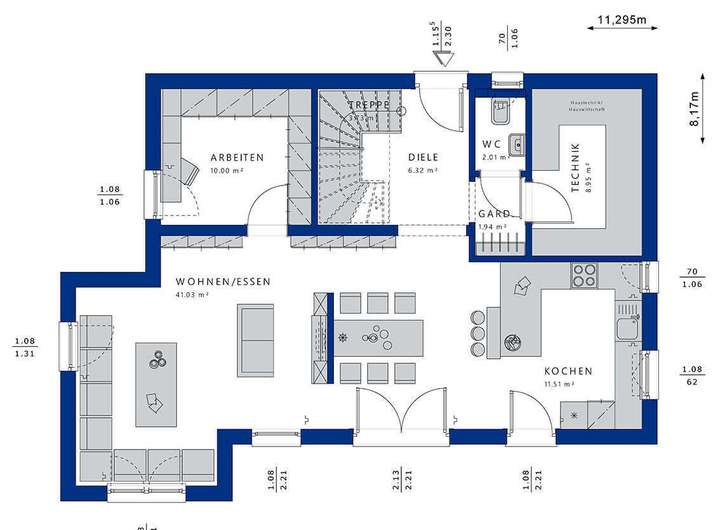 Die Ausbaustufe "Schlüsselfertig" bietet Ihnen den Vorteil, dass Sie sich um nichts kümmern müssen. Alle Bau- und Innenausbauarbeiten werden von Bien-Zenker übernommen, sodass Sie nur noch den Einzug planen müssen. Im Preis sind hochwertige Materialien und moderne Ausstattung enthalten, die ein komfortables Wohnen garantieren. So erleben Sie einen reibungslosen Bauablauf und können sich ganz auf die Vorfreude auf Ihr neues Zuhause konzentrieren.