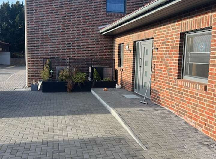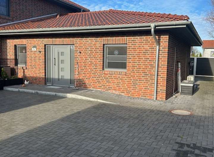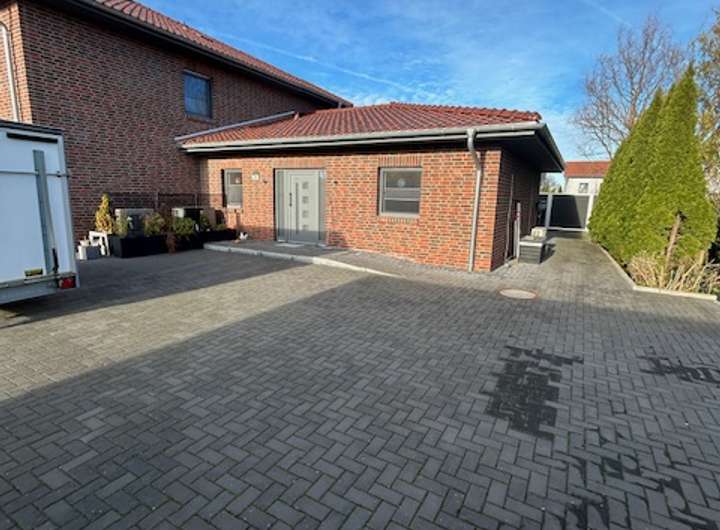 Der direkt angebaute Bungalow überzeugt mit einer barrierearmen Gestaltung und einer Wohnfläche von ca. 70 m². Hier befindet sich eine praktische Küche, ideal für eine eigene Wohneinheit oder als komplett autarker Bereich für Senioren, Gäste oder Mitarbeiter.