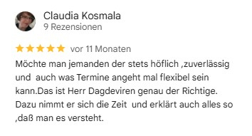 SERVICE schreibt Herr Dagdeviren groß und dick, denn nichts stört Ihn mehr, als seinen Service zu vernachlässigen. Wie Herr Dagdeviren gerne selbst zu pflegen sagt: "Ich will angenehm anders als alle anderen sein."