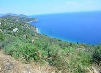 Eine Traumhafte begrünte Landschaft mit Olivenbäumen, mit einem phantastischem Weitblick auf das Meer.