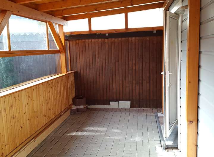 Linksseitig befindet sich die schöne Wohnküche mit Abstellraum und angrenzenden Wintergarten.