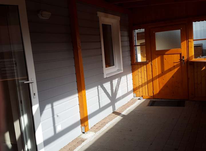 Schönes Einfamilienhaus aus 2001 mit ca 110 qm Wohnfläche, Außensitzplatz. Fast ebenerdiger Zugang in den Windfang mit Gäste-WC.
