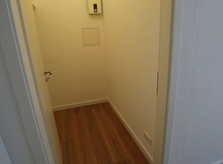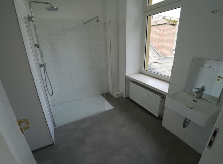 Über den großzügigen Flur gelangt man in das frisch sanierte Bad (große Walk-in-Dusche, WC Waschbecken), das separate WC, in die großzügige Küche, sowie in ein großes Durchgangszimmer, das sich als Esszimmer oder als Büro nutzen lässt. Das geräumige Wohnzimmer und das Schlafzimmer schließen sich an. Die Wohnung wurde frisch gestrichen, alle Böden sind neu, die Bäder wurden vollständig saniert. Die hochwertige Einbauküche wird mitvermietet. Insgesamt befindet sich die Wohnung in einem sehr guten Zustand.