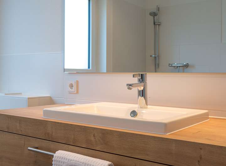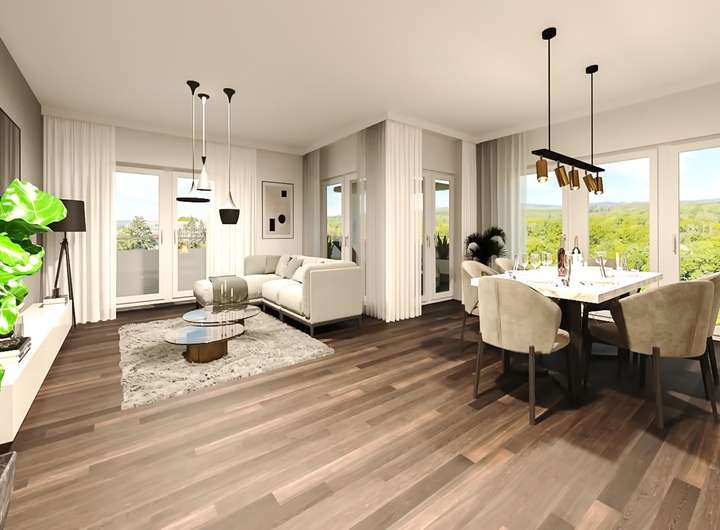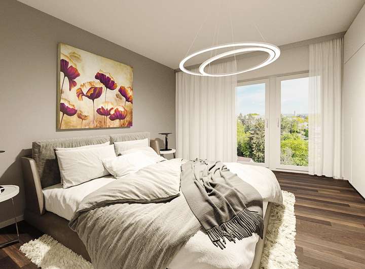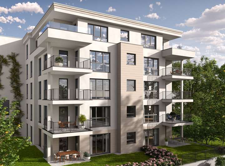 Das Gebäude ist mit viel Gefühl in das Umfeld eingefügt. Die modernen Wohnungen überzeugen durch ihre gelungene Verbindung von Licht, Exklusivität und optimaler Nutzungsmöglichkeit. Die Wirkung der bodentiefen Fenster mit feinen Unterteilungen wird durch die transparenten Balkonbrüstungen unterstrichen. Farben, Formen und Materialien sind harmonisch aufeinander abgestimmt.