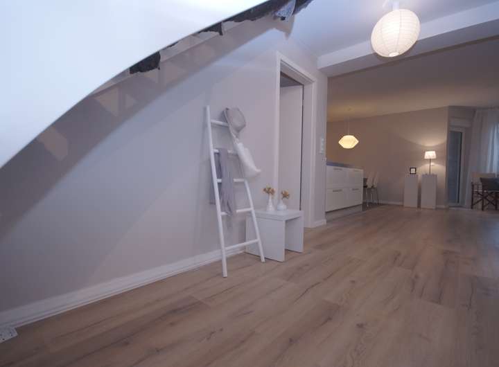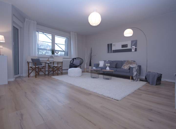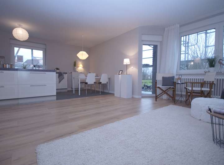 - Die Wohnung ist mit modernem Laminat ausgelegt