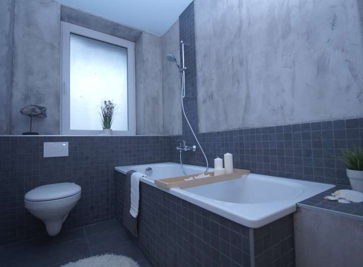 - ein modernes Badezimmer mit Dusche und Mosaikfliesen befindet sich im Erdgeschoss
