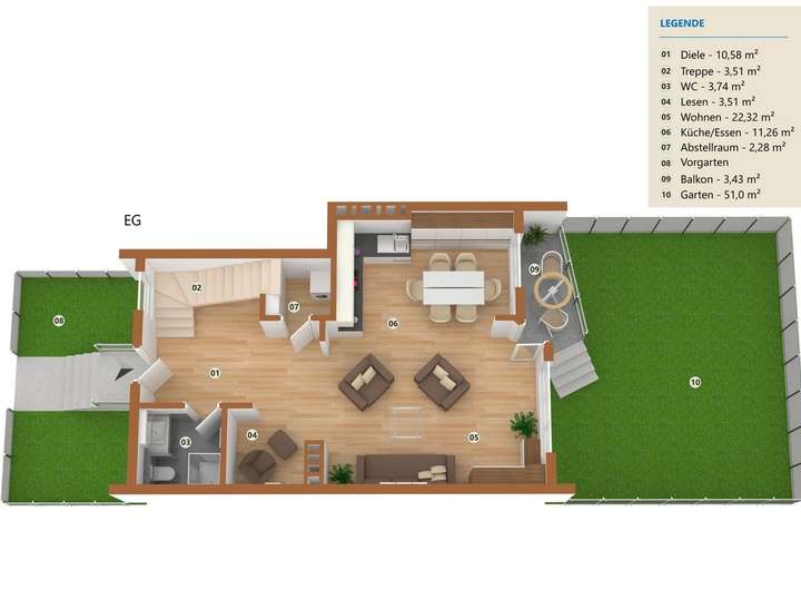 - ein kleiner Vorgarten ist vorhanden sowie ein Garten (ca. 51 qm) zur alleinigen Nutzung