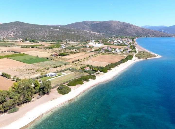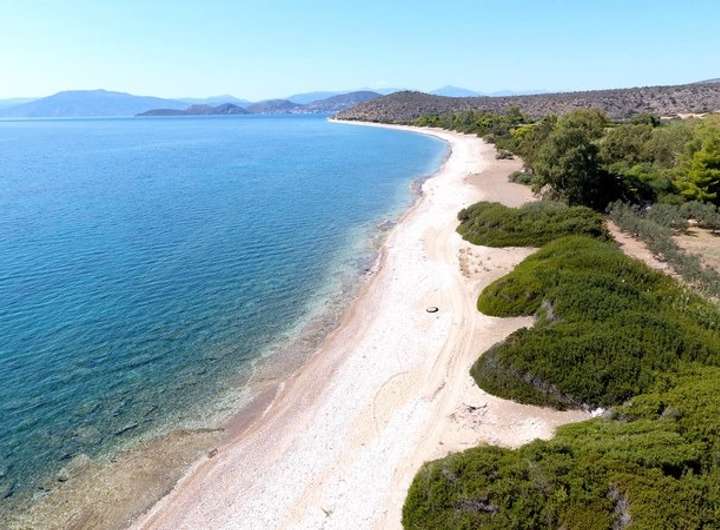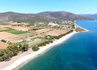 Vom Sandstrand ca. 50 Meter entfernt nahe der Stadt Asini der Präfektur Argolida, in idylischer ruhiger Landschaft in Flacher umliegender Ebene.