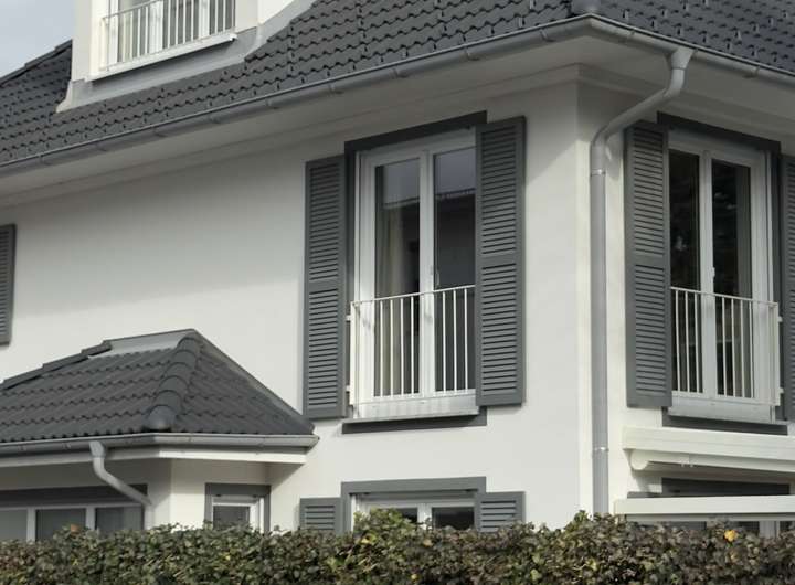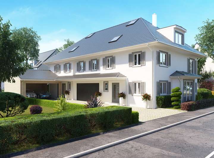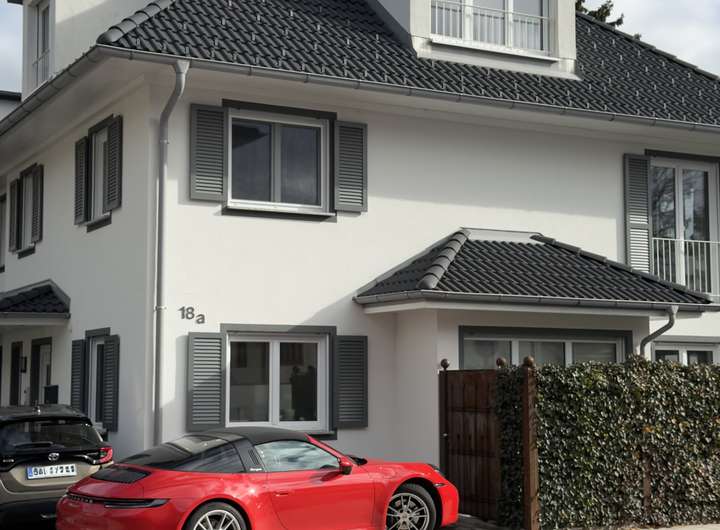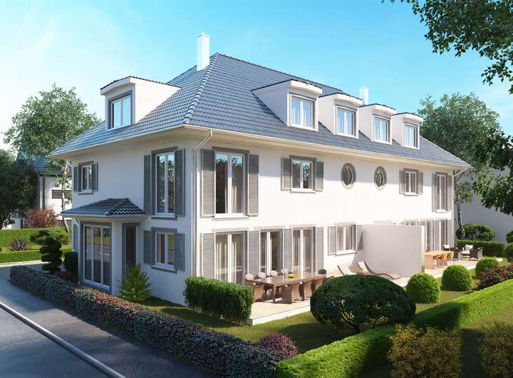 In ruhiger, zentraler Innenstadtlage stehen hier zwei Villenhälften, klassisch, elegant und zeitlos schön. Die Häuser verbinden das gute Alte mit dem geschätzten Neuen. Eine ruhige, durch Erker, Vor- und Rücksprünge untergliederte Fassade vermittelt zeitlose Schönheit. Ein elegantes Walmdach mit traufseitigem Dachüberstand bietet Fassade und Gebäude dauerhaften Schutz. Im Bereich der Eingänge und Garagentore rundet ein gemeinsames Vordach den Innenhofcharakter ab. Hellgraue Aluminium-Fensterläden vermitteln dem Gebäude stilvolle Eleganz. Jedes Haus verfügt über 6,5 Zimmer und 4 Bäder auf insgesamt ca. 224 qm Wohnfläche. Weitere Highlights sind der Atelierstil im Dachgeschoß, die Möglichkeit zum Ausbau einer Sauna im großen Bad und der direkte Zugang vom Wohnhaus in die geräumige Doppelgarage. Das Haus hat eine südwestliche Ausrichtung. Eine Doppelgarage und 2 Stellplätze gehören zum Haus und sind im Kaufpreis enthalten.