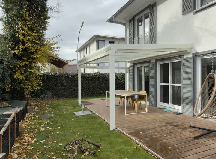 Die Süd-West-Terrasse wurde vor kurzem Überdacht und mit einer wohnlichen Holzterrasse ergänzt.