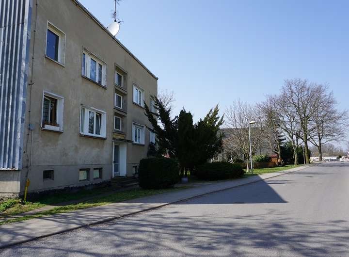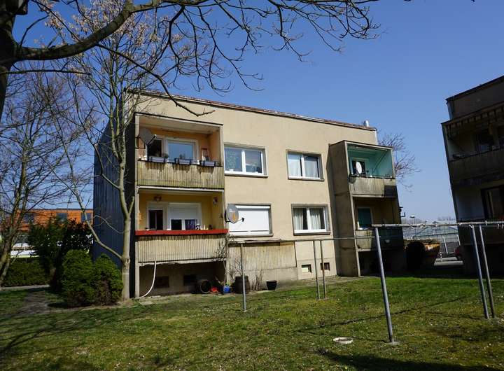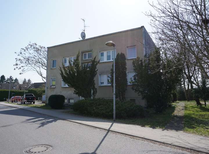 1. Ein zweigeschossiges unterkellertes Mehrfamilienhaus an der Asternstraße mit 4 Wohnungen, bestehend aus drei Zimmern, Küche, Bad, Flur und Balkon. Die Wohnfläche des Hauses beträgt insgesamt ca. 234,82 m². Die Wohnungsgrößen liegen zwischen ca. 57 m² und ca. 59 m². In einem der Kellerräume ist die Heizungsanlage für alle drei Häuser installiert. Neben den Kellern zu den einzelnen Wohnungen gibt es noch zwei Gemeinschaftskeller darunter einen Fahrradkeller