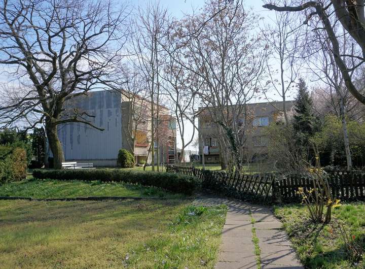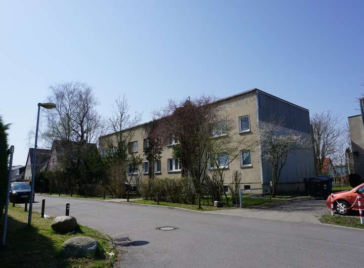 2. Ein zweigeschossiges ebenfalls unterkellertes Wohnhaus an der Dahlienstraße mit acht Wohnungen, zugänglich über zwei Aufgängen mit je vier Wohnungen. Die Wohnungen verfügen über 3 Zimmer, Küche Bad, Flur und Balkon. Die Gesamtwohnfläche des Gebäudes beträgt ca. 524,31 m². Die Wohnungsgrößen liegen zwischen ca. 56 m² und ca. 59 m². Neben den Kellern zu den einzelnen Wohnungen gibt es auch Gemeinschaftskeller.
