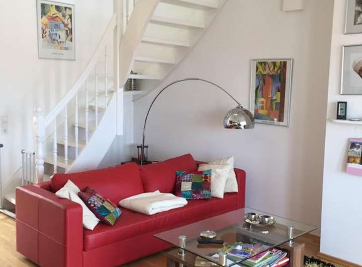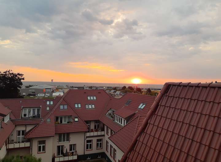 in 2 Ebenen mit innerer Treppe, mit Seeblick, in Cuxhaven Döse zwischen Alte Liebe und Duhnen-Strand. Die Wohnung befindet sich in der End-Etage, je Schlafzimmer (mit direkter Seesicht) mit einem Bad, Wohnzimmer mit moderner Einbauküche mit großen Gaubenfenstern. Der PKW-Stellplatz befindet sich direkt vor dem Haus.