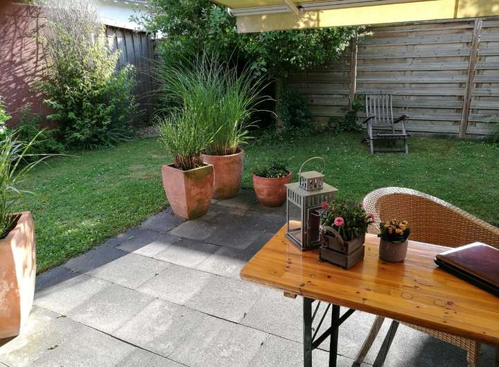 Ein Garten (zur Eigennutzung ) mit Terrasse im hinteren Bereich rundet das schöne Gesamtbild ab.