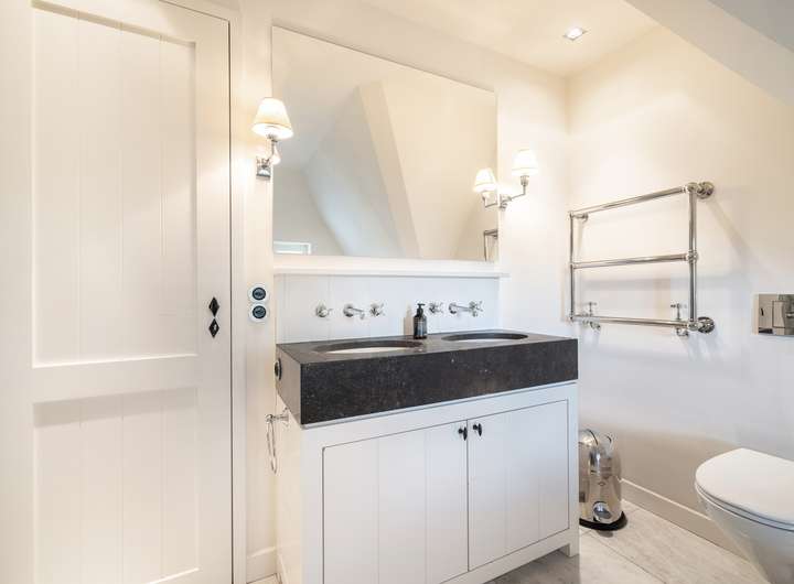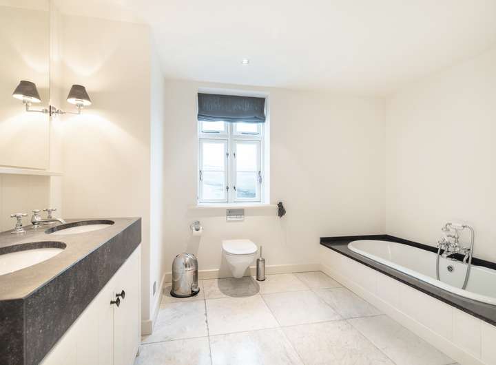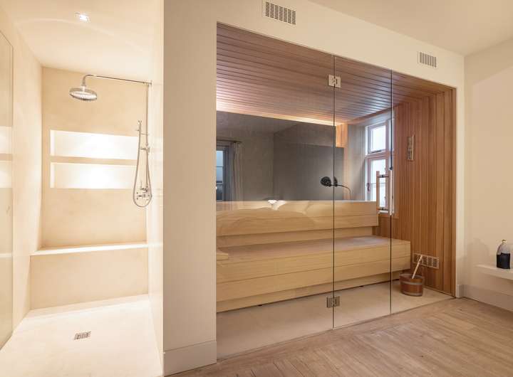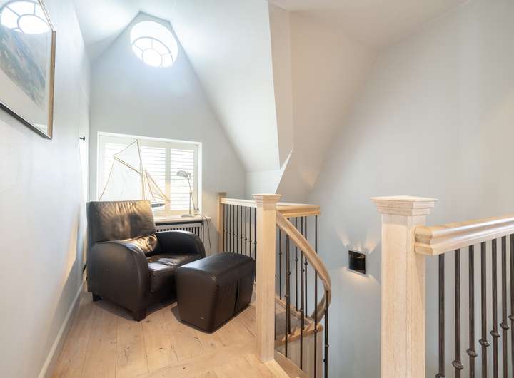 Großzügiger Wohnbereich mit offenem Kamin, hochwertige Küche mit großem Essplatz, zwei Schlafzimmer im Dachgeschoss, zwei großzügige Räume im Untergeschoss, zwei Vollbäder, Gäste-WC, modern gestalteter Wellnessbereich mit Sauna, massive Eichenholzdielenböden, erlesene Steinböden, maßgefertigte Tischlereinbauten, glattgespachtelte Wände, abgestimmtes Farbkonzept.