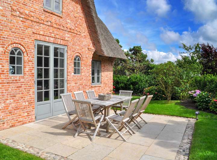 Im nördlichen Bereich des Ortes, wenige Minuten von der Nordsee, als auch vom Wattenmeer entfernt gelegen, klassische Rotklinkerfassade mit diversen Mauerwerksverzierungen, Holzsprossenfenster, Reetdach, großzügige Süd/West-Terrasse, schön angelegter, von inseltypischen Friesenwällen eingefasster Garten, Erdgarage mit direktem Hauszugang, Stellplatz.