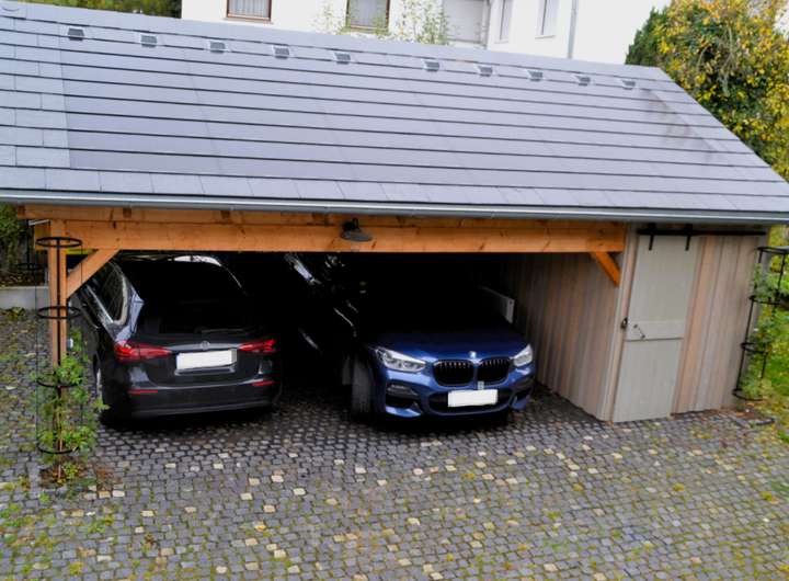 _ Carport für zwei Fahrzeuge mit Wallbox