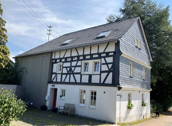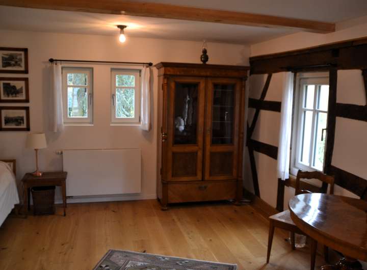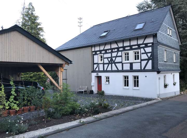 Der Fachwerkteil besteht aus dem 19. Jahrhundert, der Anbau aus den 1970er Jahren. Beide Teile wurden umfassend kernsaniert, umfassend architektonisch gestaltet und nach heutigen modernen Standards angepasst, aber mit viel Gefühl für die alte Bausubstanz.