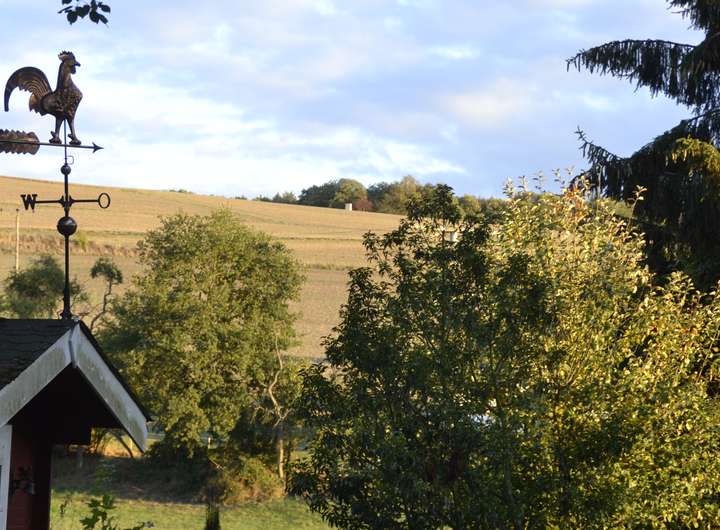 Das Haus selbst liegt an einer wenig befahrenen Dorfstraße. Richtung Süden hat man einen wunderschönen Blick in das Tal, in der Kühe weiden und ein kleiner Bach verläuft, und auf den gegenüberliegenden landwirtschaftlich genutzten Hang. Eine kleine, für den öffentlichen Verkehr gesperrte Straße führt zur barocken 500 m entfernten Altenberg-Kirche und etwas weiter zum Kloster Gronau.