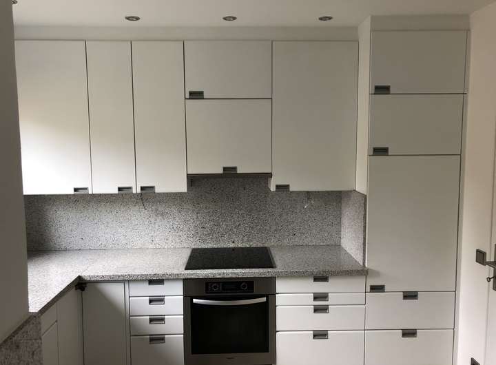 - Einbauküche mit massiver Granit-Arbeitsplatte.