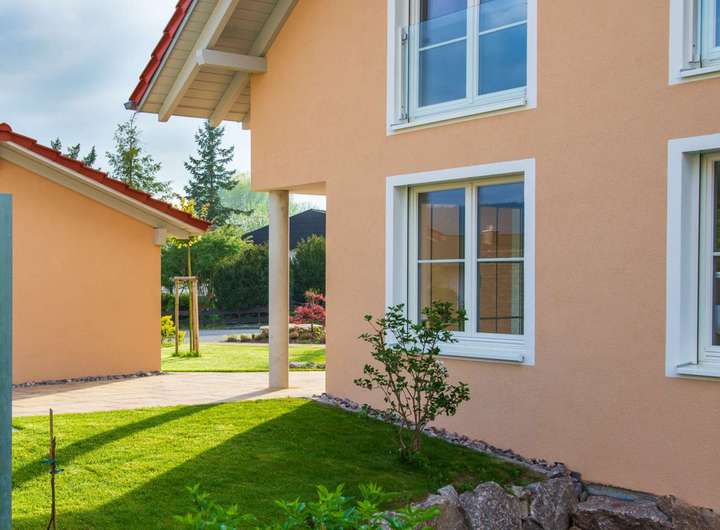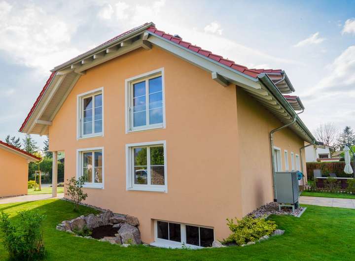 Die im Landhausstil gestaltete Doppelhaushälfte wurde in Niedrigenergie-Massivbauweise erbaut. Dies bedeutet Niedrigenergie Porotonsteine, 3-fach Holzfensterverglasung, sowie eine hervorragende Dämmung.