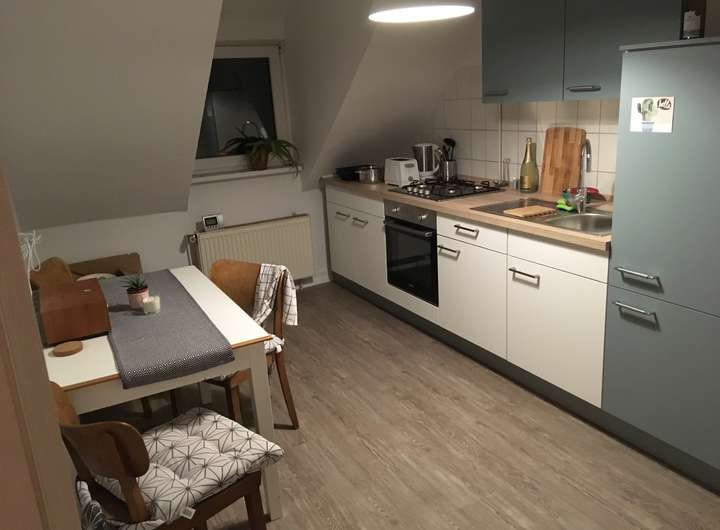 Es ist Laminatfußboden ausgelegt. Das Badezimmer ist modern. Die Küche ist mit einer Einbauküche (aus 2017) ausgestattet. Die Wände sind tapeziert und weiß gestrichen. Zu der Wohnung gehört ein Kellerraum.