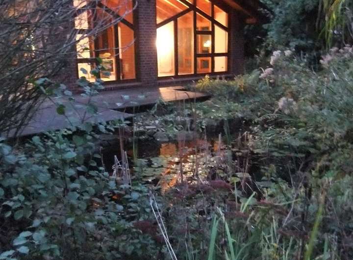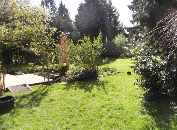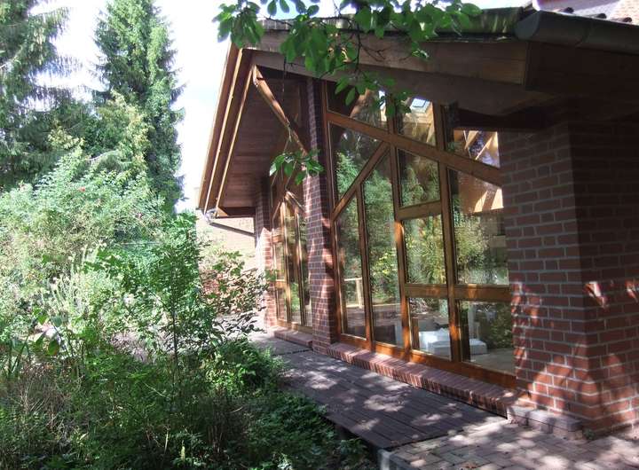 Wohnen in stilvollem Ambiente. Lichtdurchflutete Haushälfte eines Zweifamilienhauses mit dem besonderen Flair (es sind zwei getrennte großzügige Hauseingänge vorhanden - s. Bild). Roter Klinker, schöne große Sonnenterasse (52 qm auf der Südseite), Gartenteich, zusätzlicher Balkon (27 qm auf der Südseite), geschmackvolle, gehobene Ausstattung. Alleinige Nutzung der ca. 1000 qm Gartenfläche. Brunnen vorhanden.