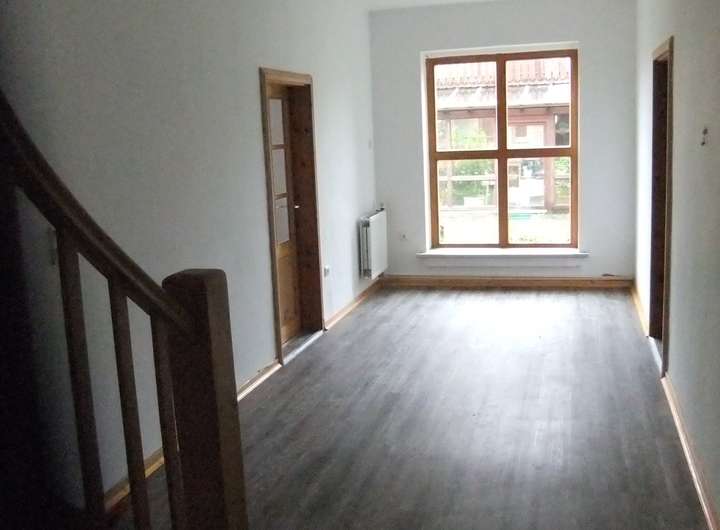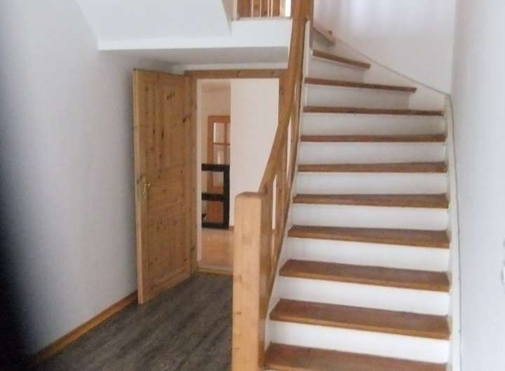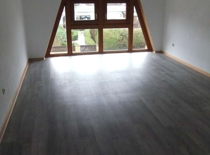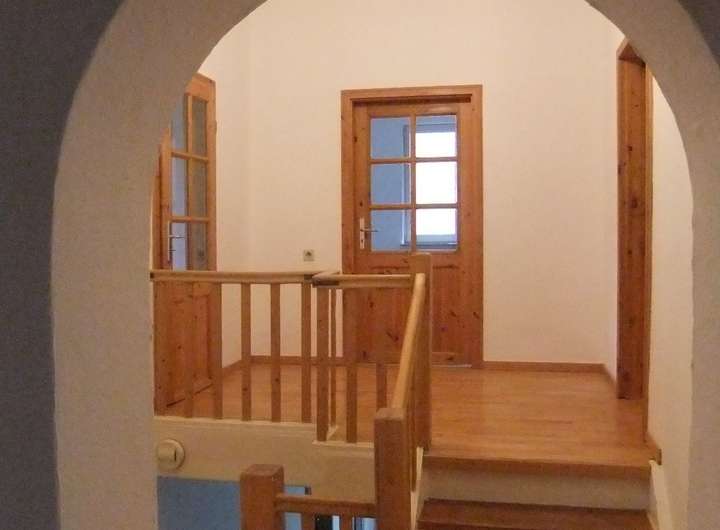 Teilweise Schiffsbodenparkett, teilweise Vinylparkett, Holztreppen.