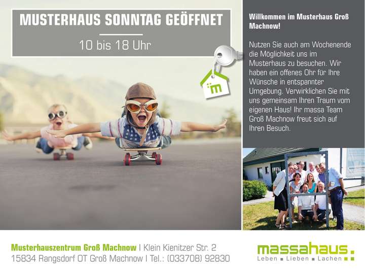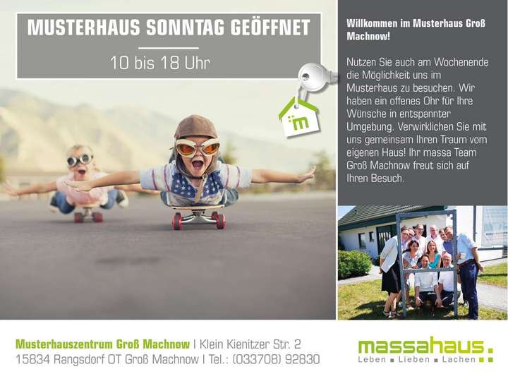 Sie wollen mehr übers bauen und meine Projekte erfahren, dann besuchen Sie mich nach telefonischer Vereinbarung zwischen 10.00-18.00 Uhr im Musterhaus Rangsdorf OT Groß Machnow